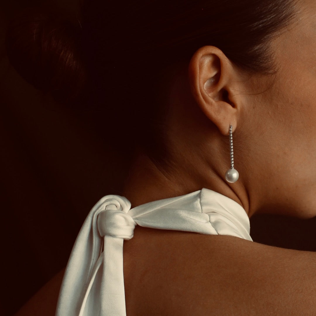 Los Aretes Lilia son la pieza perfecta para un estilo sofisticado y atemporal. Su diseño presenta una barra recta totalmente cubierta de zirconias brillantes que culmina en una perla redonda de suave lustre. Ideales para alargar el cuello y añadir un toque de glamour a cualquier atuendo. Hechos de Plata