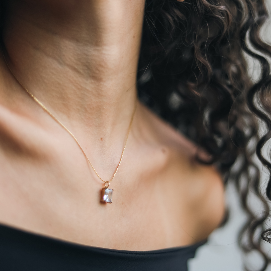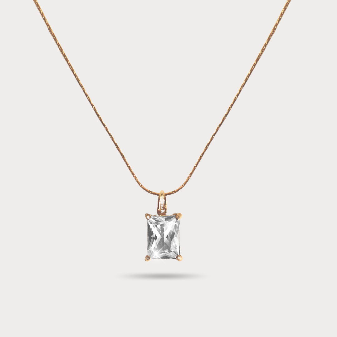 Un collar que no pasa desapercibido. Hecho de Acero, con detalles únicos: Cadena delgada con dije rectangular, zirconia transparente. Perfecto para elevar cualquier look con un toque de estilo fresco y atrevido.