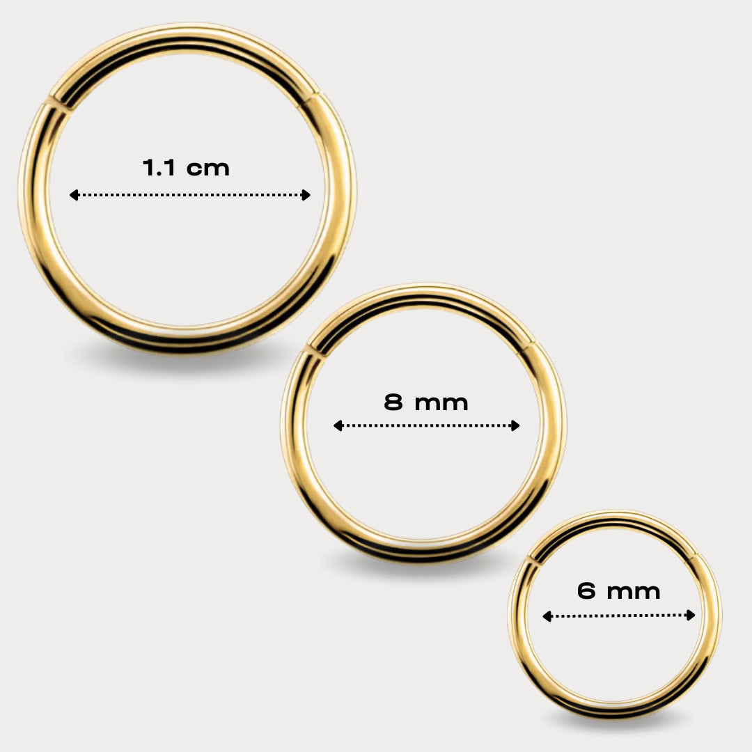 - Hélix: Este varia según la ubicación de la perforación. Pueden ser los tres tamaños. Medir con aros que tengas en casa.
