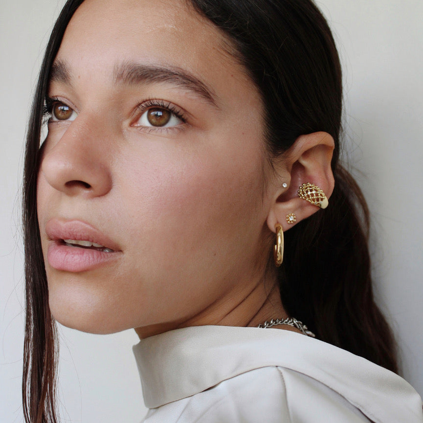 Este diseño no es la típica flor, es una mezcla que hace hace la ilusión de parecer un a flor pero es mucho más que eso, uno de nuestros favoritos sin duda!! Complementará tus aretitos de una manera increíble!!