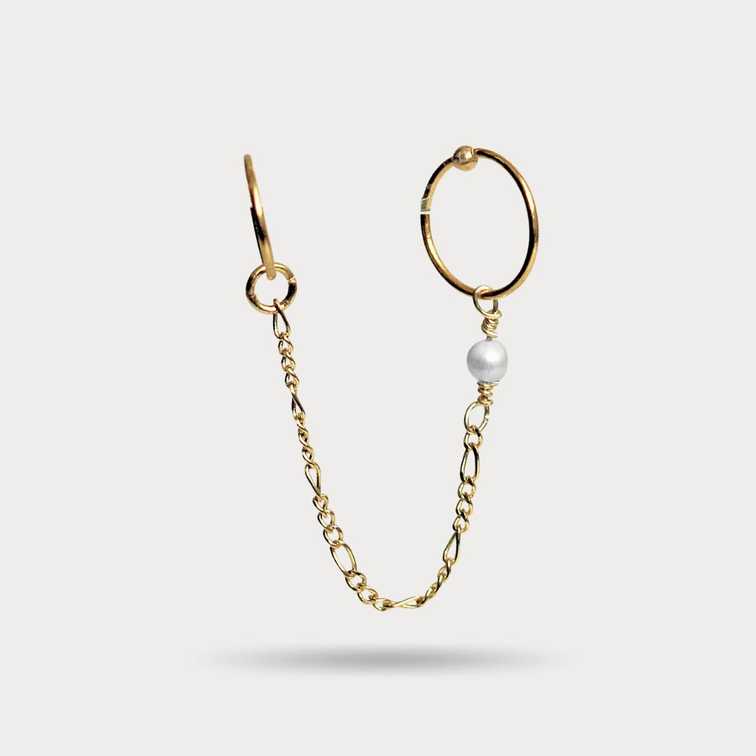 - Material: aro de acero inoxidable, cadena de chapa de oro 14K y perla 100% natural.