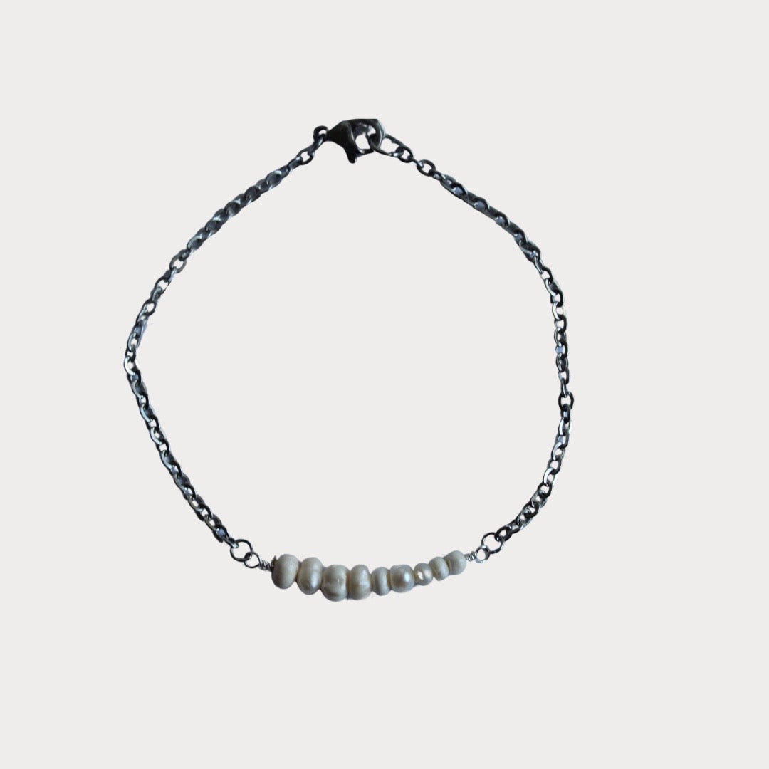 Amamos esta combinación de cadena con perlas para esta pulsera que te hacen sentir dos en uno. ¡Es un básico que combina con todo, must have ENTREDIJES!