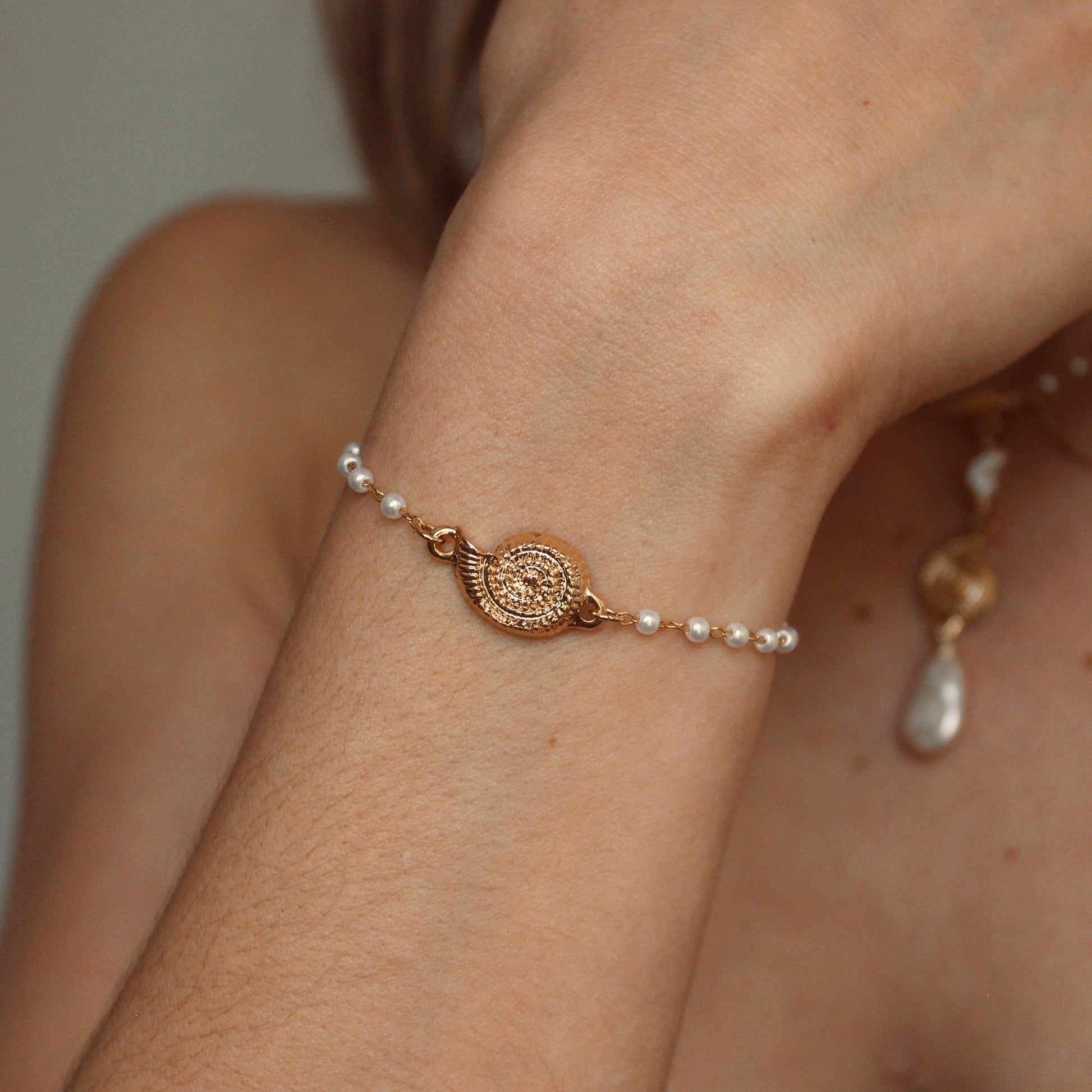 Pulsera dorada con dije de caracol. Un detalle muy cute para tu muñeca.