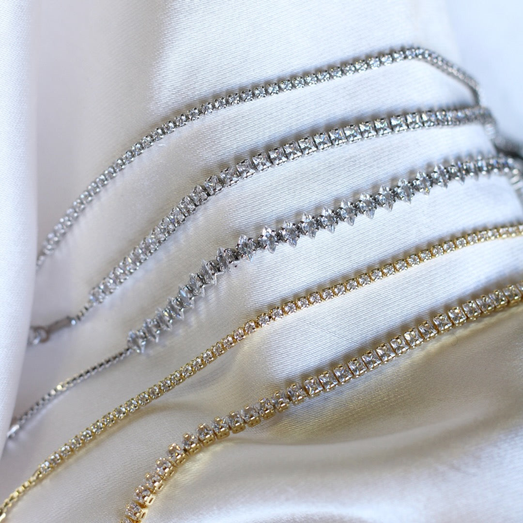 La Pulsera Naomi es la pieza perfecta para quienes buscan un toque de glamour. Su hilera de zirconias cuadradas, cuidadosamente engarzadas, crea un brillo continuo y sofisticado. Con su práctico cierre ajustable, se adapta cómodamente a tu muñeca. Disponible en rodio.